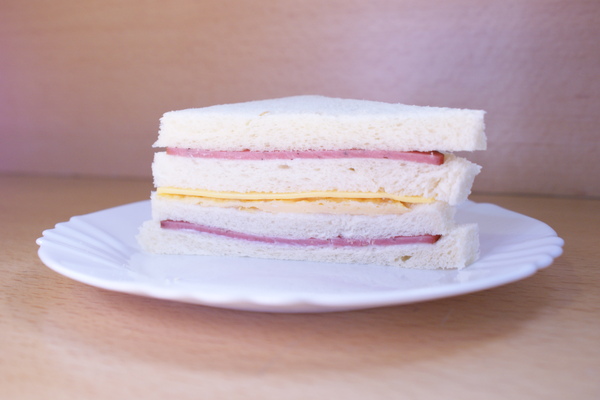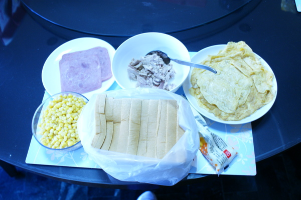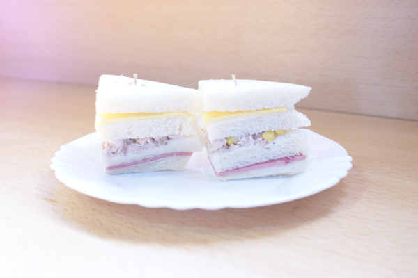 準備好食材後就準備開始做三明治作為主餐啦. Emily原本提議由她來負責麵包切邊的工作, 不過看到她的完成的第一片麵包後就退卻了, 心想:「天阿,這是被狗啃過的吧?」