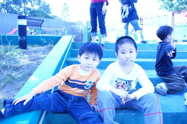 結果小猴仔根本無心吃飯, 看到同學就只想要玩. 最後我只好把他的好哥兒們都抓來拍照啦. 這時候就會見識到小孩子的可怕, 尤其當一群小孩子聚在一起的時候, 那簡直就是惡魔的聚會.