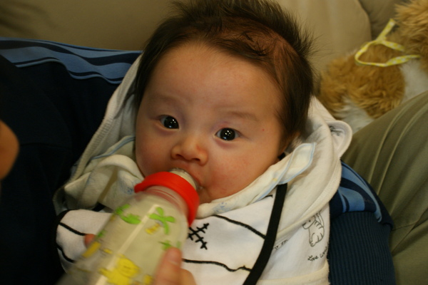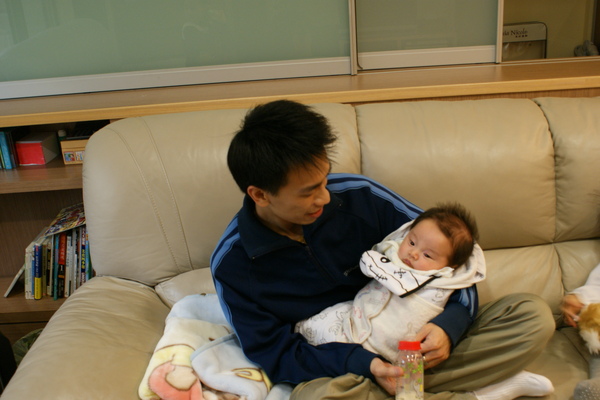 後來坐沒多久,小Audi因為肚子餓了開始嚎啕大哭, 只見阿量這位新手爸爸馬上很認真的抱起Audi餵奶, 一付有子萬事足的樣子,看樣子到時候如果再添個妹妹, 那阿量可能要把她捧到天上去了.