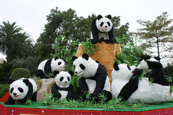 下面的熊貓花燈是我覺得會場中最好看的一個啦.花燈的表面貼皮可是毛茸茸的呢, 看來這裡看熊貓的人潮應該比動物園看團團、圓圓的人少多了吧.