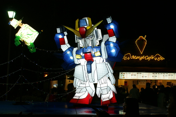 很快的,天黑黑囉.這時花燈也點亮了, 果然花燈還是要晚上照起來比較漂亮啦!