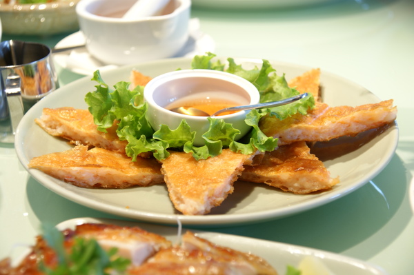 月亮蝦餅是店內的人氣餐點喔,也是我最喜歡的一道. 蝦餅的內餡很鮮Q,而外皮則煎的非常的酥脆. 再淋上一點微甜的蜜汁,很難讓我拒絕捏.