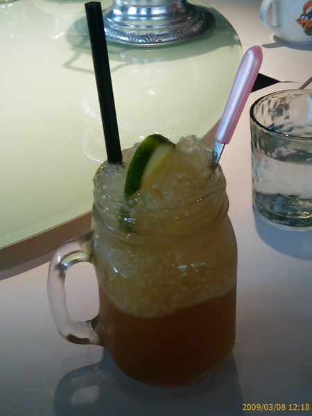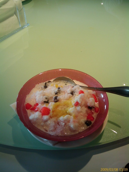 當然最後少不了甜點啦, 這天大家的甜點都點了摩摩渣渣冰. 淡淡的椰奶配著碎冰,裡面還有波羅蜜和紅毛丹,吃起來很有熱帶風情呢.