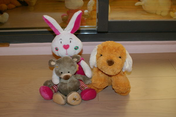 ,最後結帳的時候發現自己還是一口氣買了漂漂兔、會散發香味的狗狗和長相有點憨呆的笨笨熊. 還好店家開的價格還蠻便宜的,否則今天又要失血了.