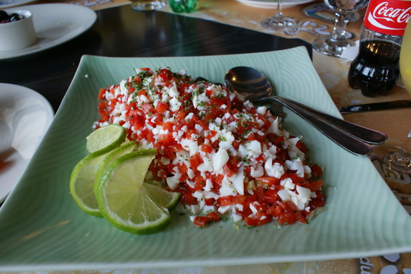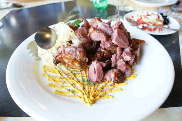 上完了前菜當然少不了沙拉啦, 我們點的是白酒墨魚香醋汁佐生菜,份量還蠻大一盤的. 裡面用大量的蛋白丁、番茄丁、美生菜絲與墨魚為主, 再配上店家調配的酸醋醬. 基本上這道菜因為酸醋醬而讓人非常開胃, 但是如果是怕酸的人則可能要斟酌一下囉.