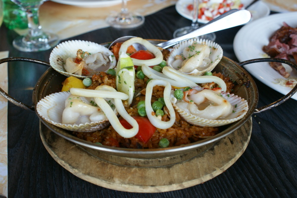 接著上的是西班牙海鮮飯. 一剛開始看到飯的顏色很深以為會有點鹹, 後來發現不但不會太鹹, 還很好吃呢. 而且飯吃起來有一種特殊的香味,不知道是番紅花的味道嗎?而且裡面的海鮮料超多的, 相對之下飯則顯得不多.